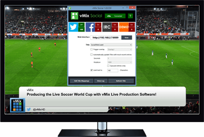 Vmix Live PRO video switcher software voor de pc. De Vmix PRO software kan de live mix opnemen op harde schijf, tegelijkertijd nog andere bronnen opnemen, uitgeven op een monitor, beamer of via extra hardware als videosignaal (meerdere veerschillende videouitgangen mogelijk) en tegelijkertijd een live stream op internet weergeven.